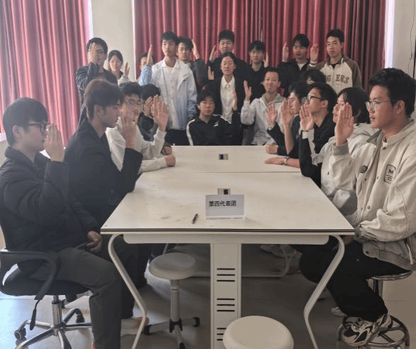 主席团候选人王伟民、林文凯、黄馨仪依次登台发表竞选演讲。王伟民围绕“强化服务效能,搭建沟通桥梁”展开阐述,提出将优化提案办理机制,提升学生诉求响应速度;林文凯聚焦“创新活动形式,丰富校园生活”,计划打造具有新能源特色的文体与学术活动品牌;黄馨仪则从“加强队伍建设,提升履职能力”出发,强调将完善学生骨干培训体系,增强团队凝聚力与战斗力。候选人真挚的承诺、清晰的规划赢得台下阵阵掌声。