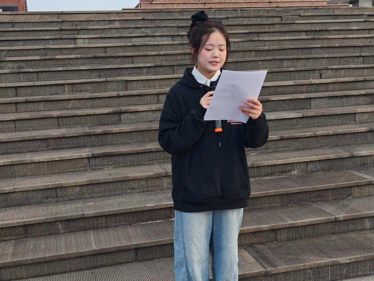 升旗礼毕,学生代表阮慧琳发言,她结合新时代青年担当,号召同学们要继承先辈遗志,将个人理想融入国家发展伟业,以真才实学践行青春誓言。